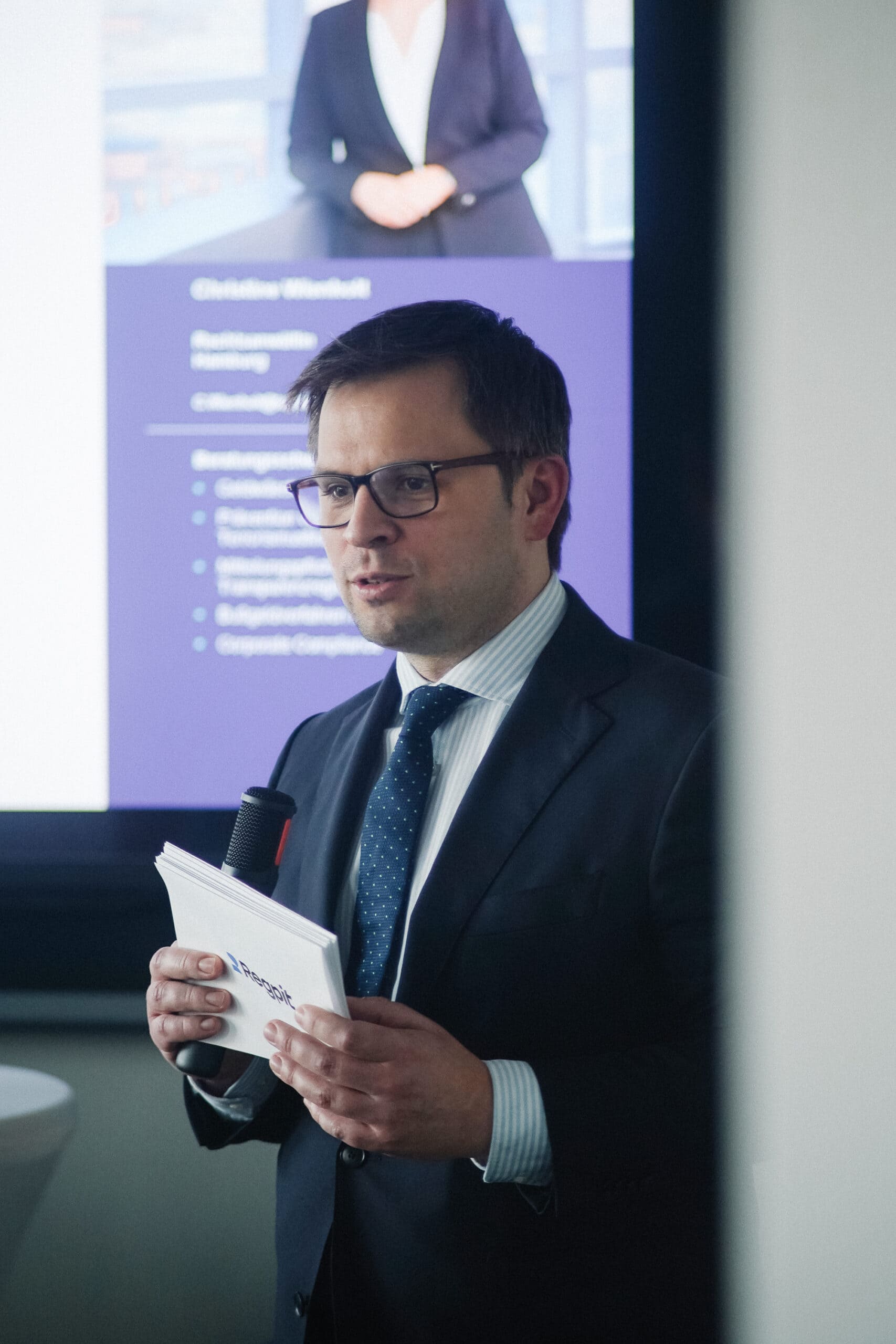Prof. Dr. Kilian Wegner provided the academic foundation for the evening. His focus was on criminal law aspects and the sustainable design of compliance structures, which sparked in-depth discussions among the participants.
